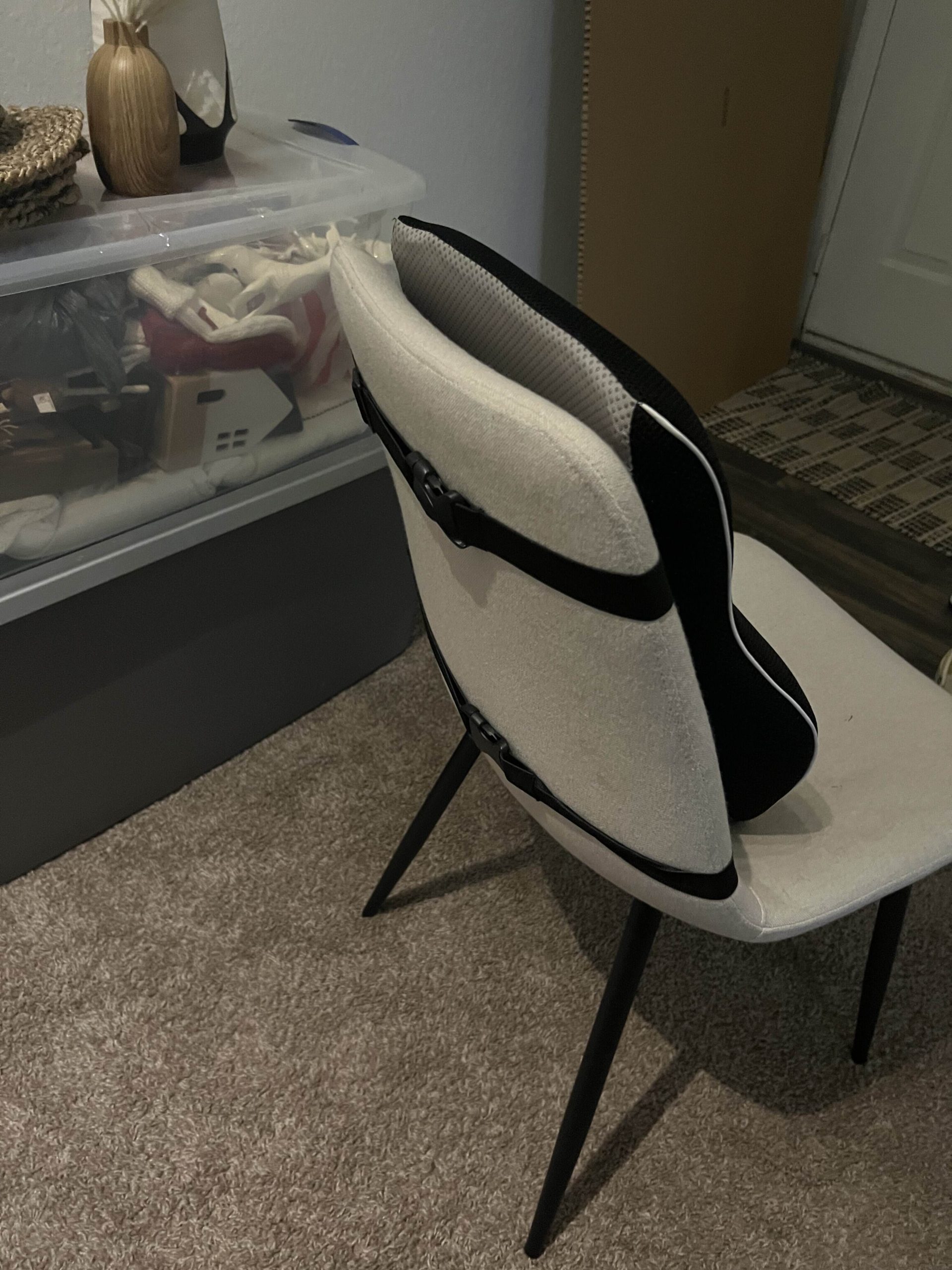 This gently used back support cushion offers firm yet comfortable lumbar support, helping to improve posture and reduce lower back strain during extended sitting. The cushion features a contoured memory foam design with a breathable, removable cover that’s easy to clean. Gently used but overall in excellent condition with no tears or stains. Ideal for office chairs, car seats, or home use.