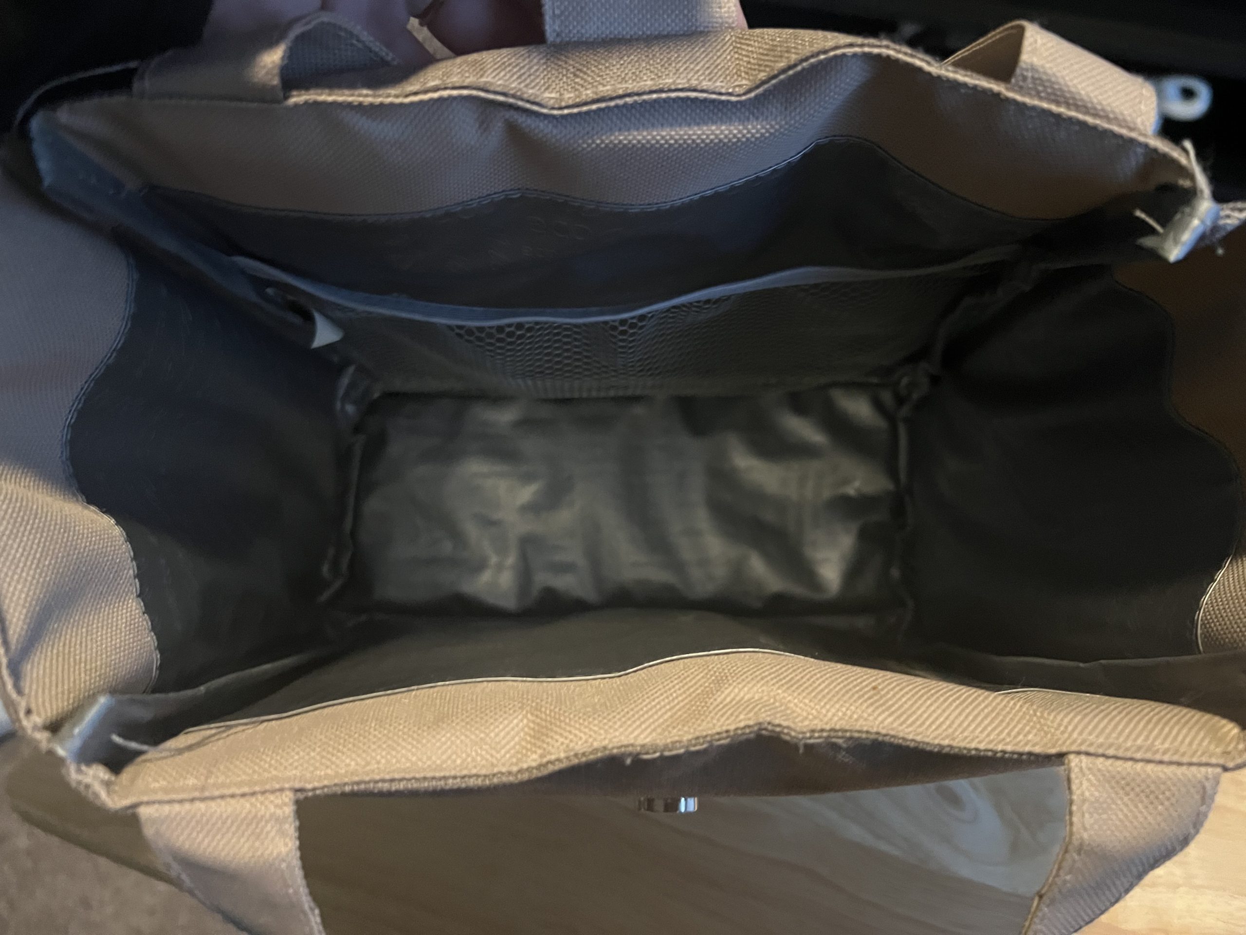 This used small brown lunch tote is practical and compact, featuring a durable exterior and insulated polyester lining to keep food fresh. It includes two convenient side pockets for utensils or small items. Gently worn with minor signs of use, but clean and fully functional—ideal for work, school, or day trips.